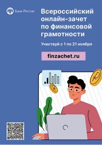 Приглашаем принять участие во Всероссийском онлайн-зачете по финансовой грамотности, который продлится до 21 ноября 2023 года. В зачете есть два уровня сложности: