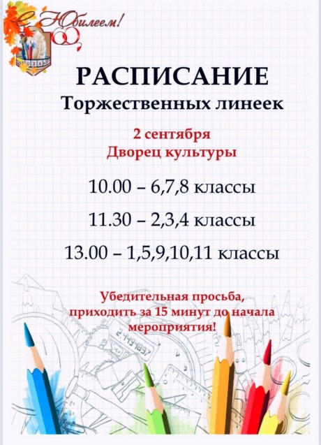 Расписание торжественных линеек